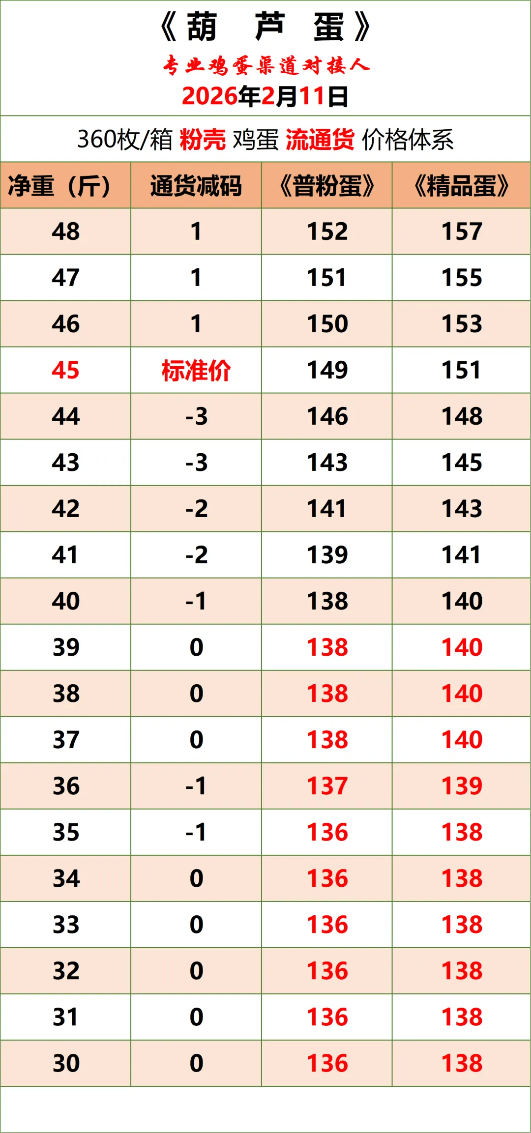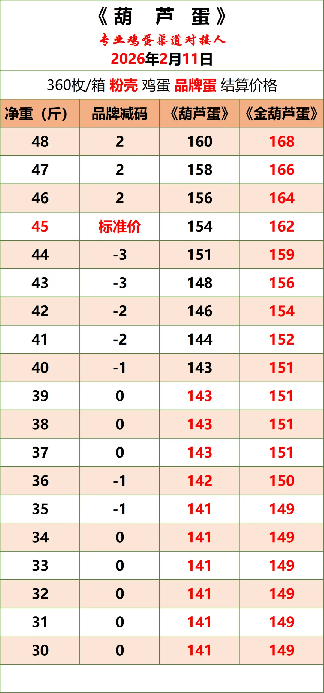 2026年2月11日《葫芦蛋》鸡蛋价格