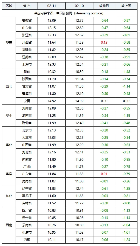 02月11日猪价:“破位”下跌!28省飘绿,猪价下跌挡不住