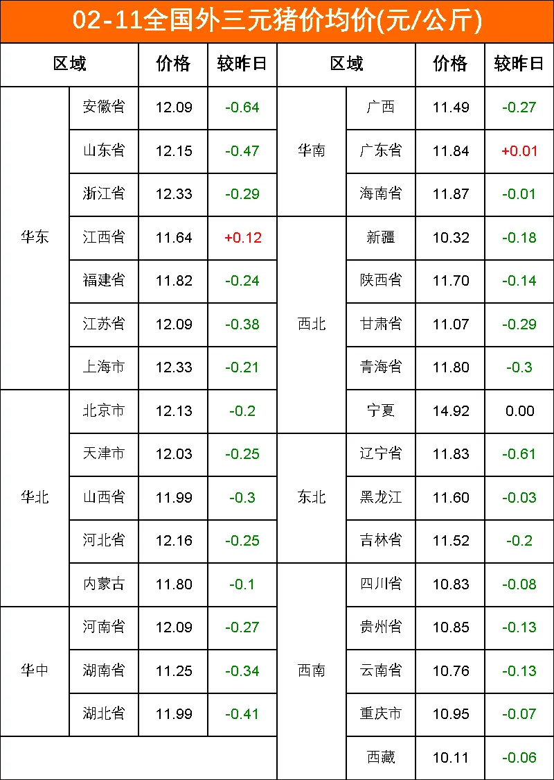 02.12明日猪价早知道,02.12全国最新猪价信息,跌跌不休!