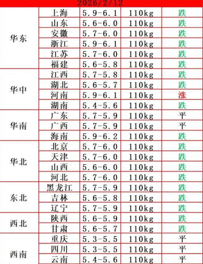 【柯恩·今日猪价】2月12日生猪价格