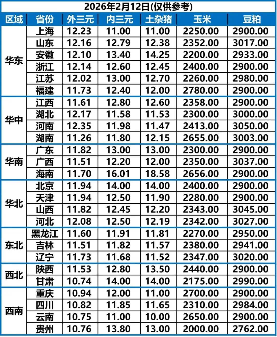 2月12日 | 正业生物猪价快报!