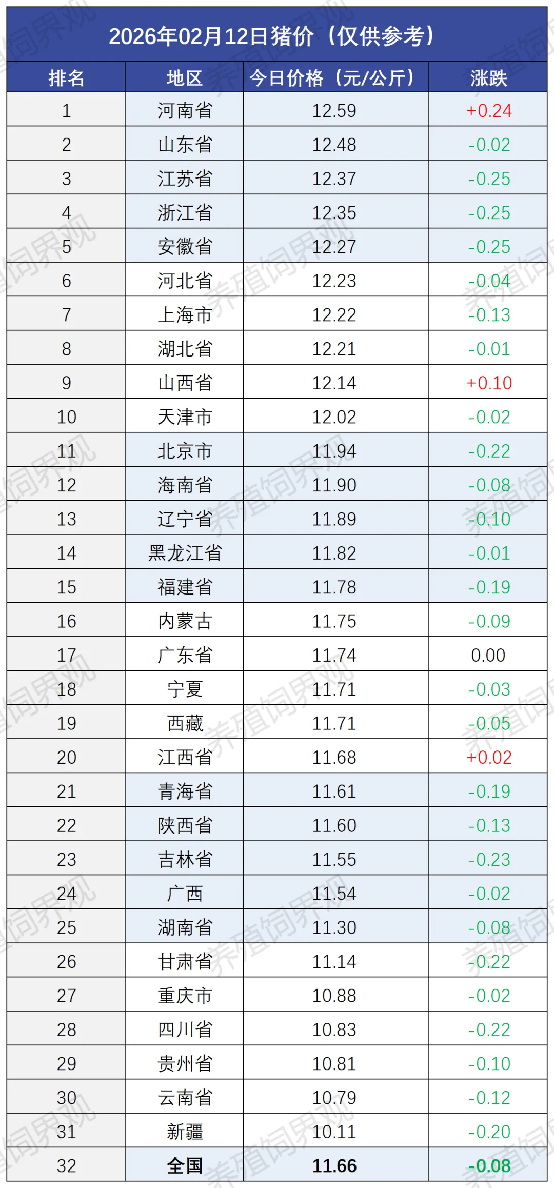 2月12日全国猪价 | 连跌5天!全国27省飘绿,多省跌入10元
