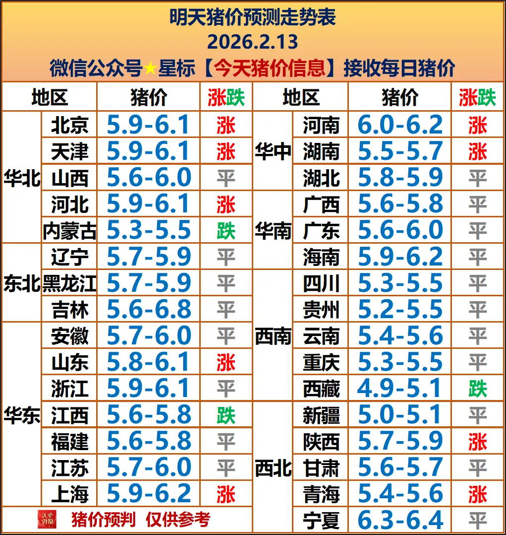 今日猪价 | 2026.2.13 明天猪价走势信息!