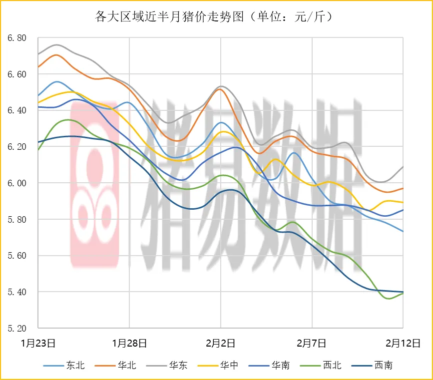 各大区域猪价表现: