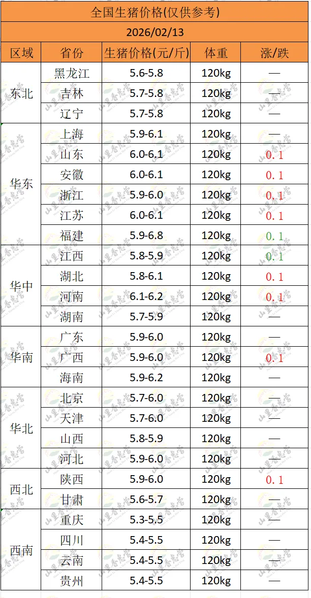 全国各地明日猪价(2026.02.13)-山里香惠营