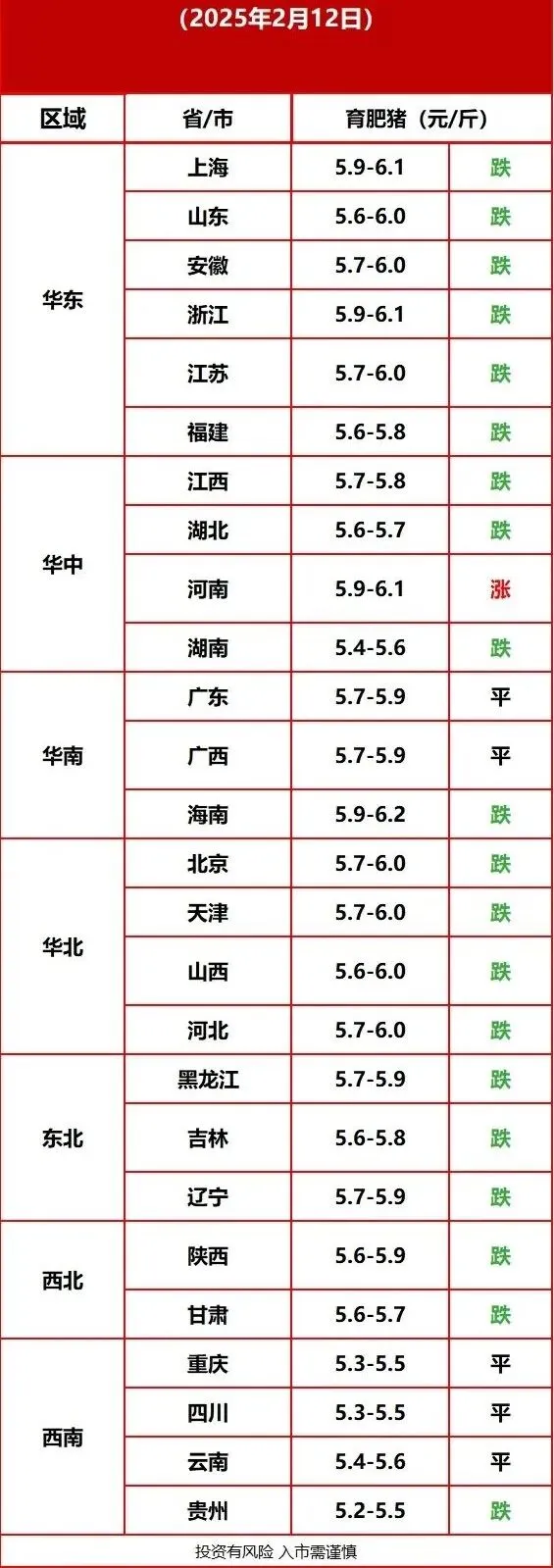 2月12日猪价下跌 预计明日个别地区上调 养羊网 2026-02-12 2月12日猪价下跌 预计明日个别地区上调每日猪价行情2月12日猪价下跌?预计明日个别地区上调www.chinabreed.com中国养殖网 养羊网 2026-02-12 上一篇:2026.2.13-明日猪价 下一篇:猪价跌跌不休,养殖户心慌慌?年前这波行情到底咋回事! 您可能还会对下面的文章感兴趣111: 相关文章 ?2026正月初五·玉山下塘乡婚礼 近期价格更新!!! 近期价格更新!!! 近期价格更新!!!