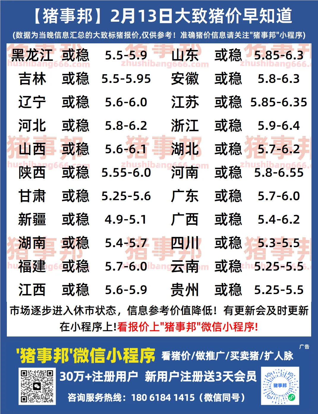 猪事帮|| 2月13日猪价早知道(假期停更!)