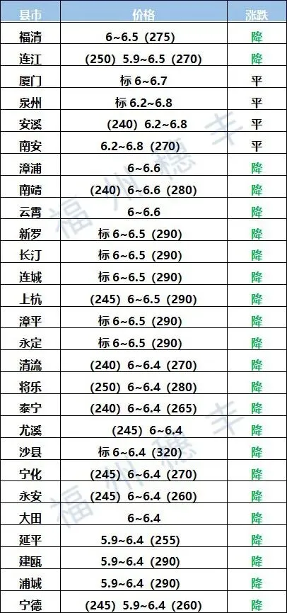 福建省生猪价格
