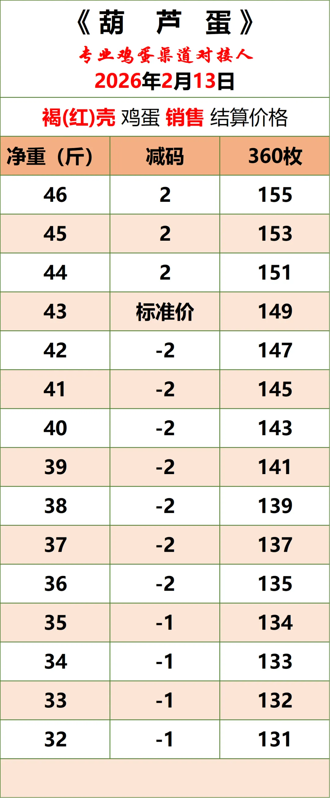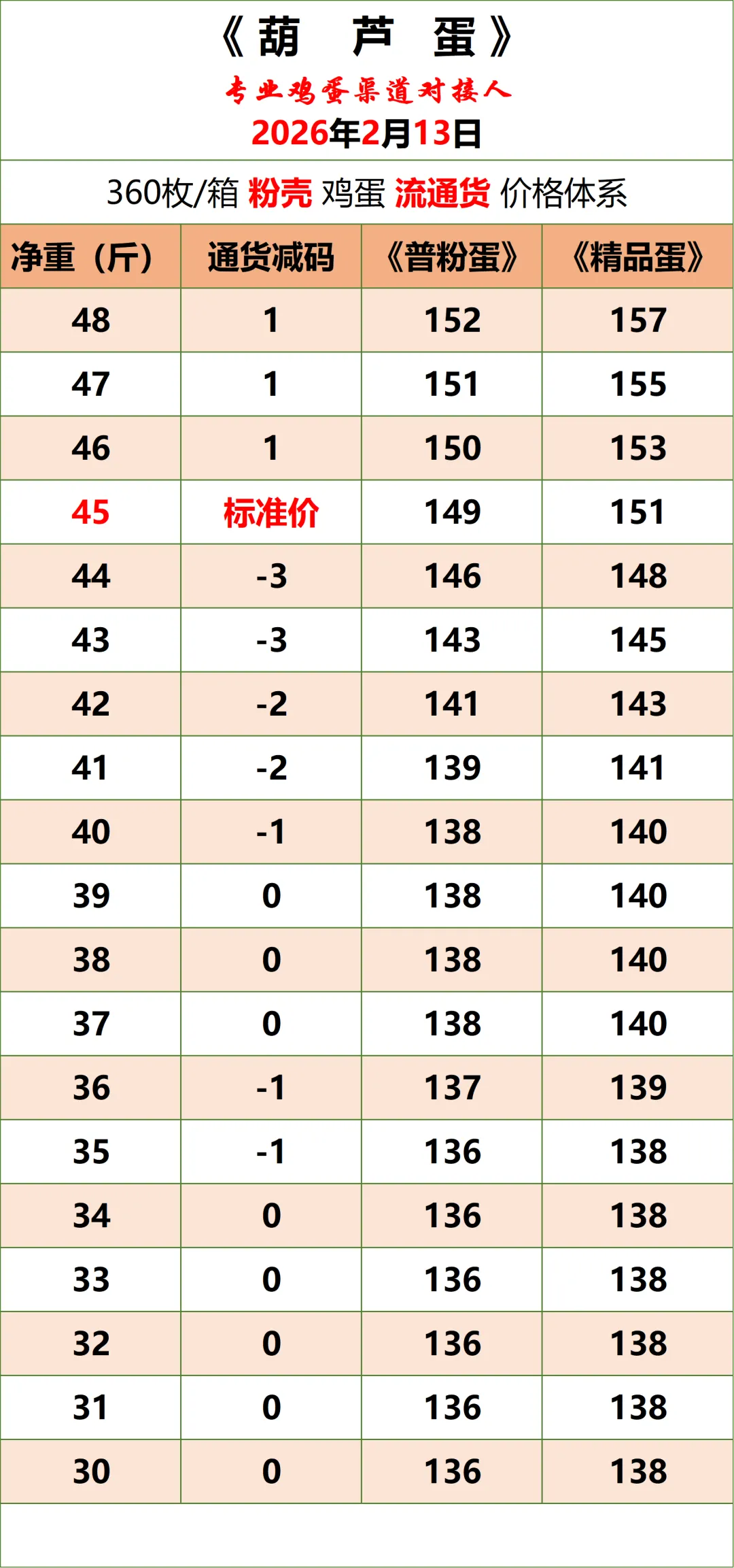 2026年2月13日《葫芦蛋》鸡蛋价格