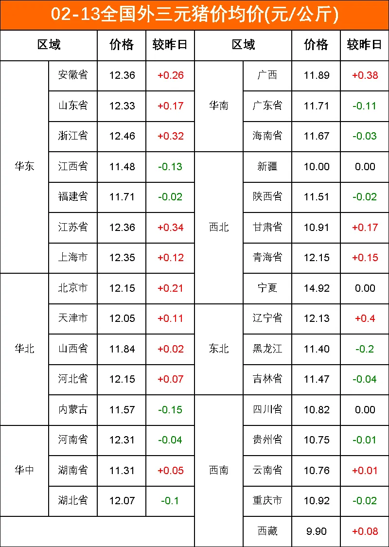 02.14明日猪价早知道,02.14全国最新猪价信息,涨!涨!涨!