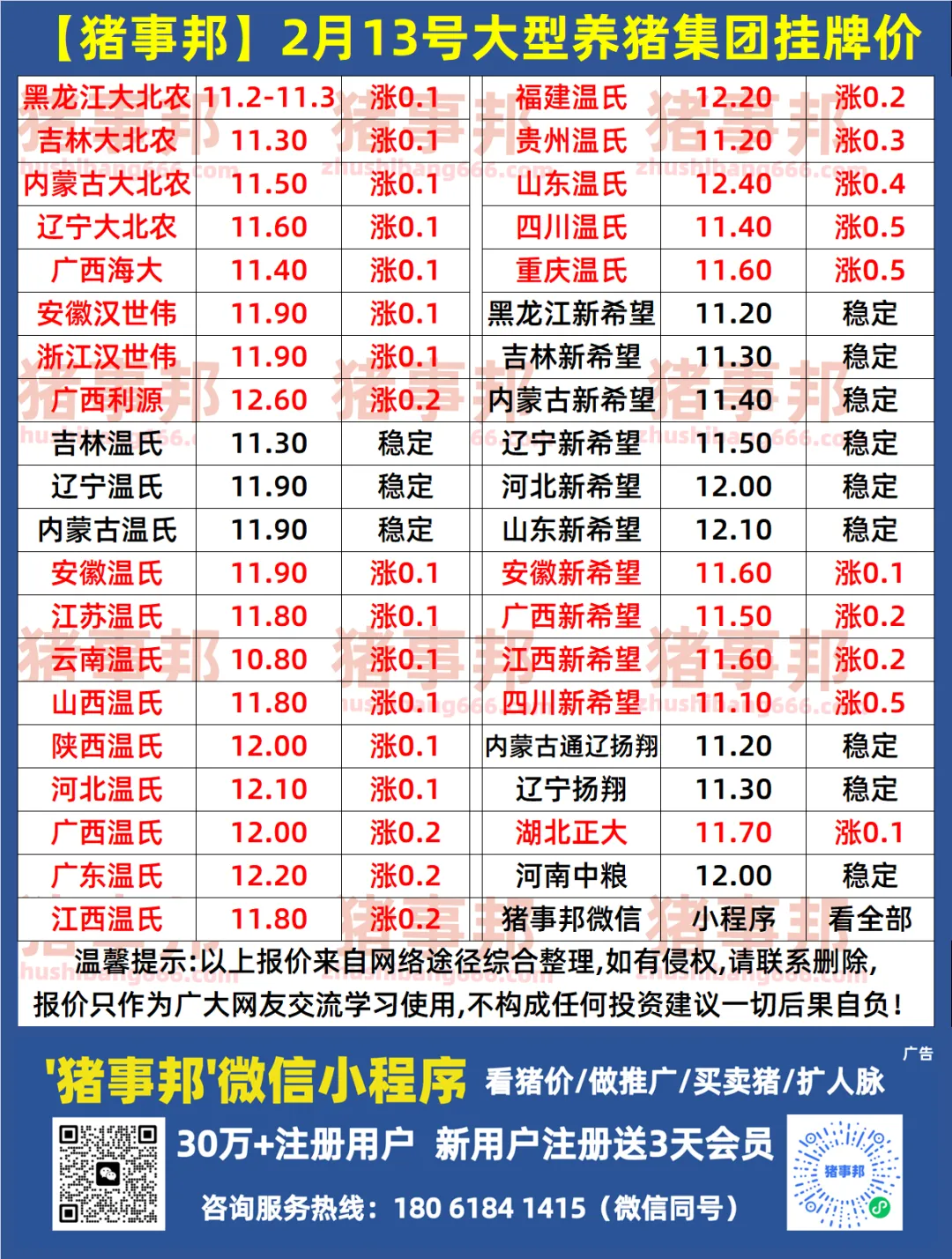 猪事邦|| 2月13日猪价汇总(连续2天上涨!)