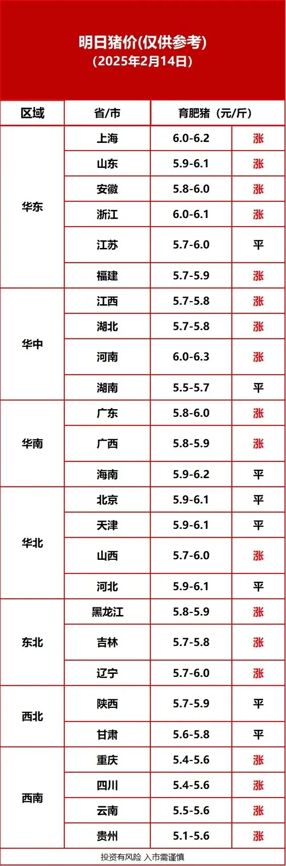 【今日猪价】2月14日全国猪价:部分地区价格调整,市场需求相对稳定 养羊网 2026-02-14 【今日猪价】2月14日全国猪价:部分地区价格调整,市场需求相对稳定 养羊网 2026-02-14 上一篇:猪价 | 2026.2.14~最新猪价 下一篇:2026.02.14鸡蛋价格行情 您可能还会对下面的文章感兴趣111: 相关文章 怎么成为千万富翁? 2025年4月13日全国各地生猪价格信息 2月2日鸡蛋价格 4连降!猪价“大降价”!中国养猪上涨在即