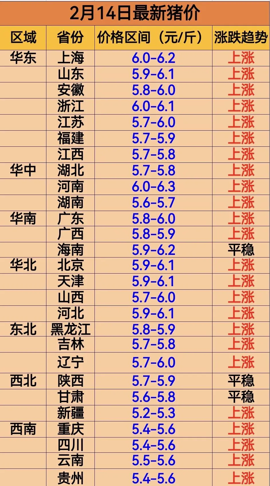 2月14日最新猪价!大面积上涨!!?2月14号全国猪价行情表