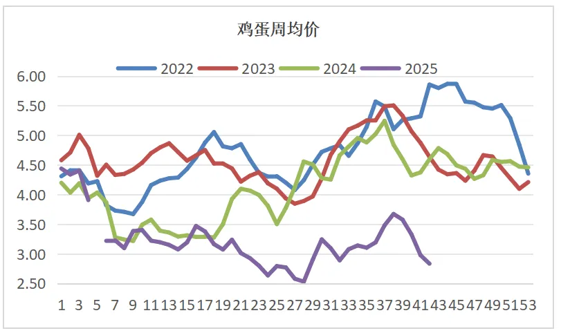 近期鸡蛋市场价格呈弱势下行态势,全国鸡蛋周度均价为每斤2.89元,较前期下跌0.11元,市场整体承压明显。淘汰鸡市场同样表现偏弱,均价稳定在4.28元,库存端压力有所缓解,市场出货节奏加快,终端消化能力边际改善,但市场整体依然处于弱势。