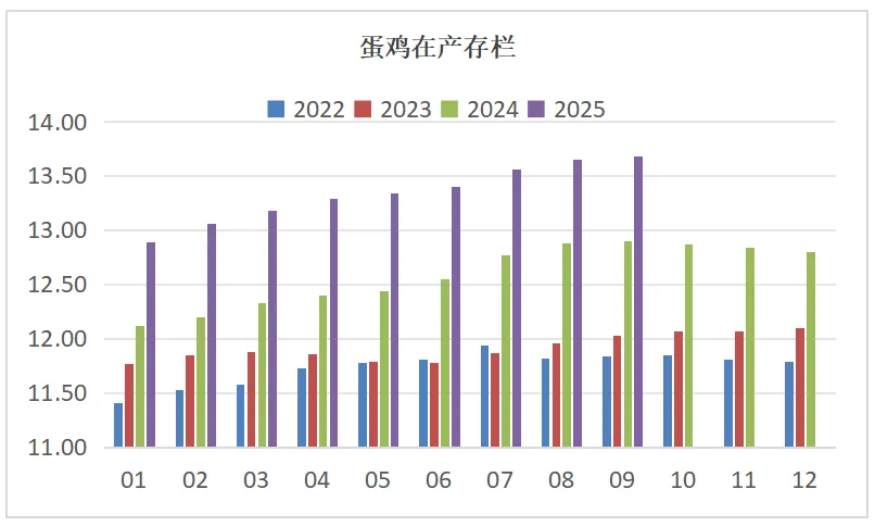 行业产能保持小幅增长,鸡蛋月度在产存栏为13.68亿只,较前期增加 0.03亿只,短期市场供应能力充足。尽管当前库存有所下降,但在产存栏的增长预示后续供应仍有释放空间,若需求端未能持续跟进,可能对价格形成长期压制,供需宽松格局短期内难以扭转。