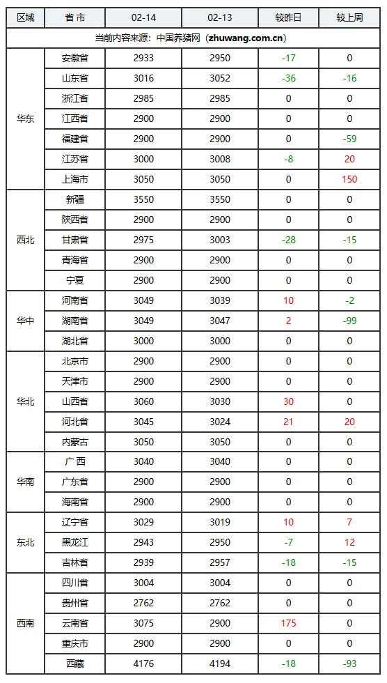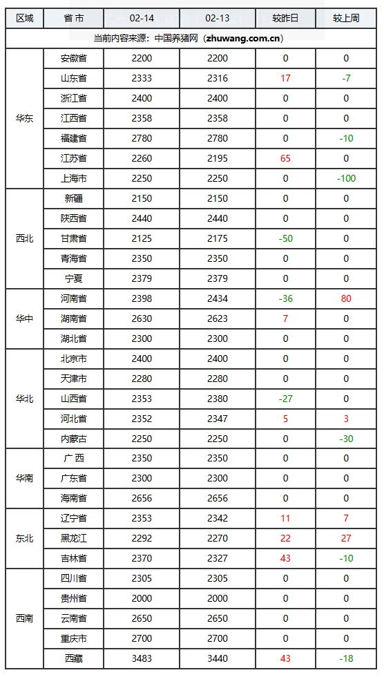 02月14日猪价:涨势延续!春节临近全国猪价趋稳伴弱涨!