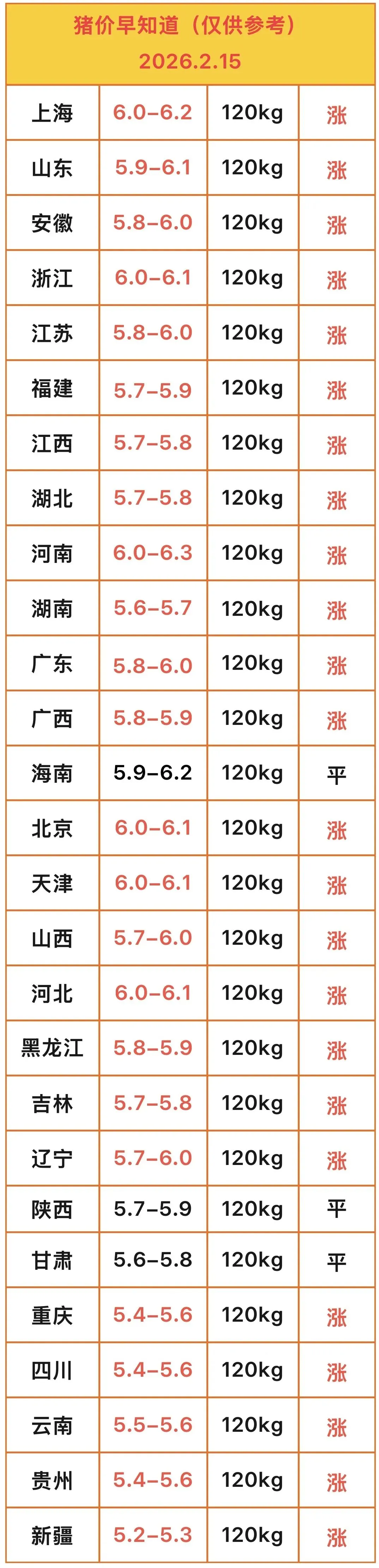 对于接下来的行情,业内人士给出明确判断:节前仅剩4天,随着屠企陆续停工放假,市场交易将趋于平淡,猪价大概率以“稳中偏弱”态势收官,2月13日起,除东北地区可能继续偏弱外,其他区域有望止跌企稳,部分省份或迎来微涨,但反弹空间有限。