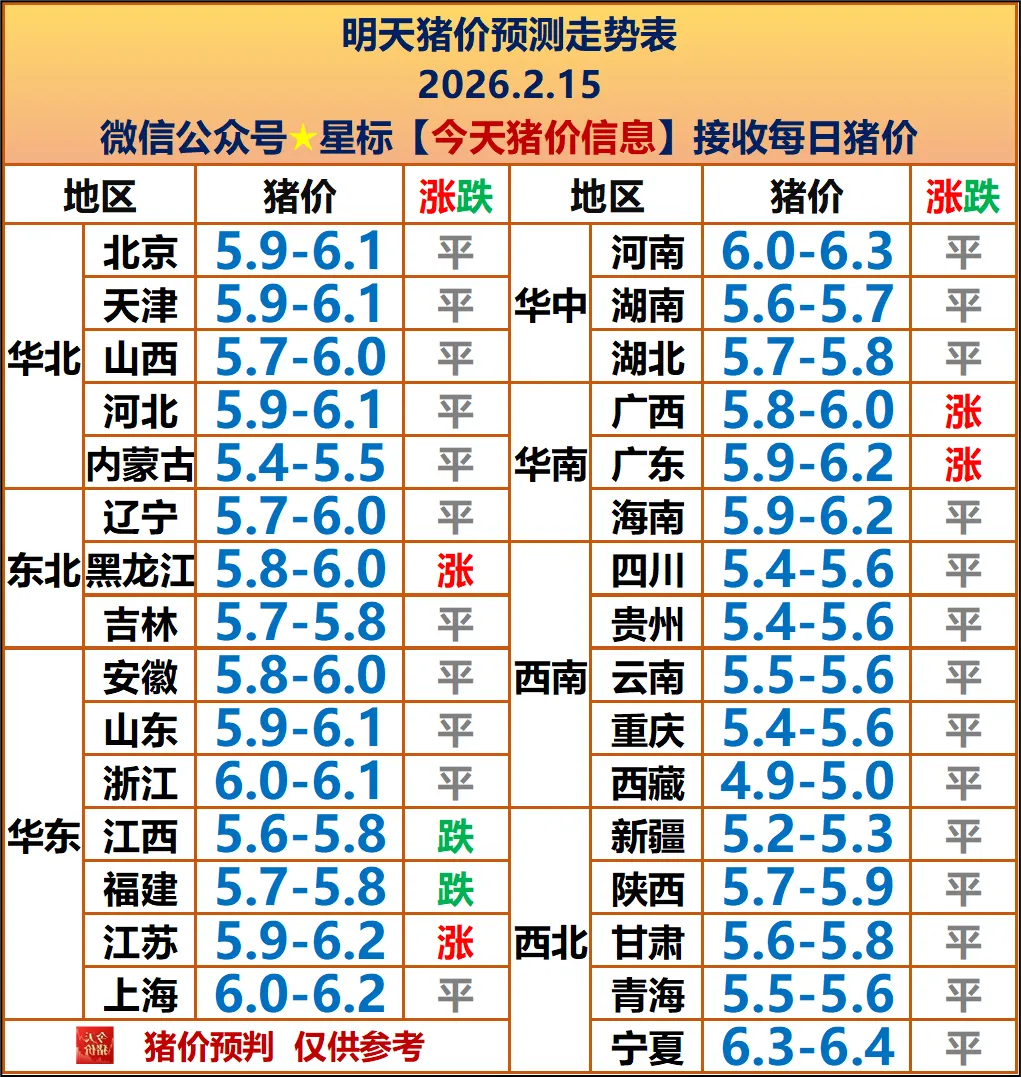 今日猪价 | 2026.2.15 明天猪价走势信息!