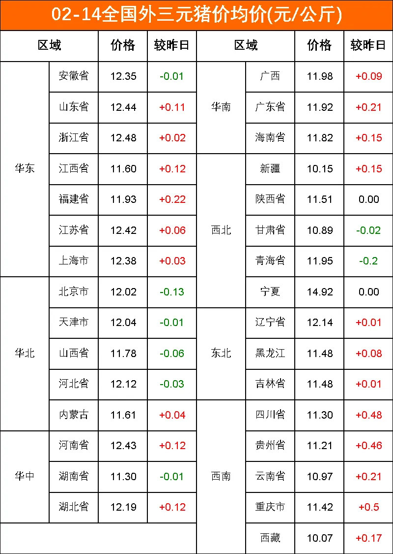02.15明日猪价早知道,02.15全国最新猪价信息,价格平稳!