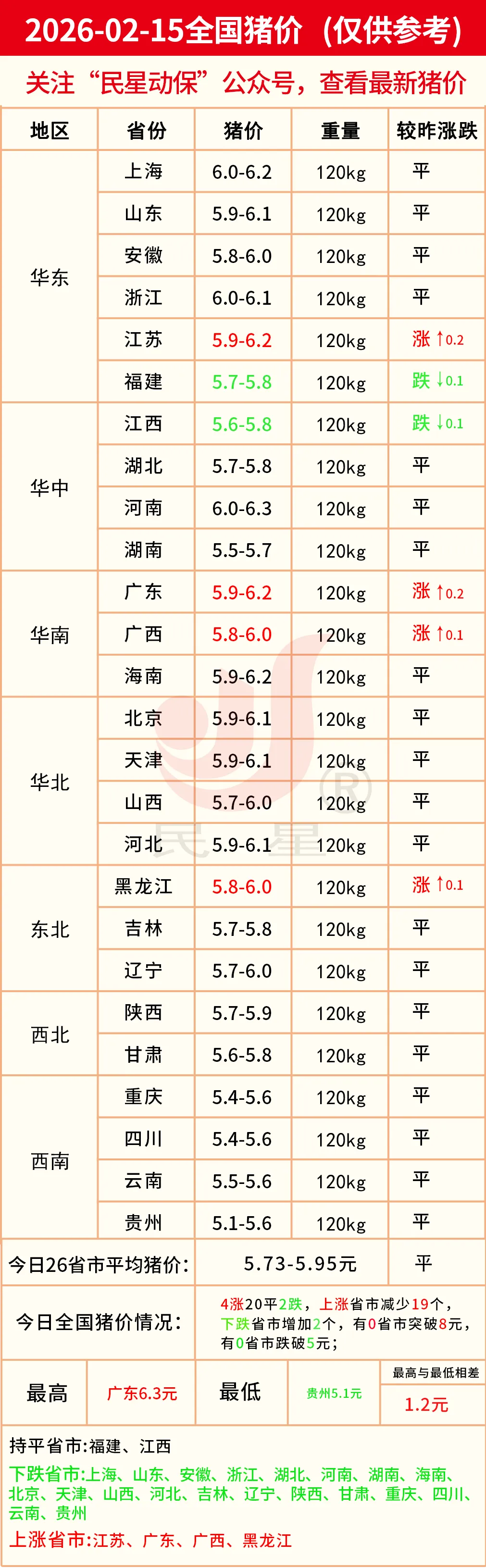 明日猪价—2026年02月15日(全国最新生猪价格) 养羊网 2026-02-14 明日猪价—2026年02月15日(全国最新生猪价格) 养羊网 2026-02-14 上一篇:【明天猪价】2026. 02.15 全国猪价! 下一篇:反常!春节前猪价弱反弹难改颓势,养户惜售又无奈,旺季成 “旺亏” 您可能还会对下面的文章感兴趣111: 相关文章 ?厨房必备!高性价比鸡蛋架 力能健,牛羊养殖的宝藏好物? Ta真的没有骗你… 【明天猪价】2026. 01.29 猪价一夜打回原型!东北成亮点!
