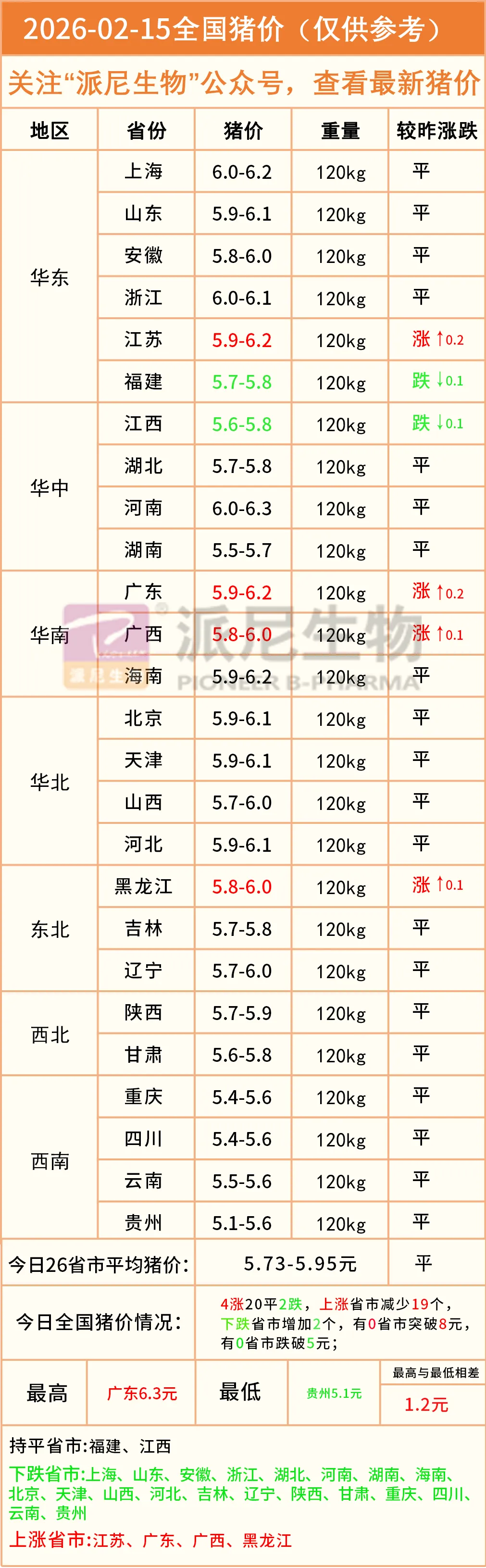 明日猪价——2026年2月15日全国生猪价格! 养羊网 2026-02-14 明日猪价——2026年2月15日全国生猪价格! 养羊网 2026-02-14 上一篇:反常!春节前猪价弱反弹难改颓势,养户惜售又无奈,旺季成 “旺亏” 下一篇:明日猪价 2026.2.15 您可能还会对下面的文章感兴趣111: 相关文章 2025年4月13日全国各地生猪价格信息 猪价调整!2026年1月30日全国各地最新猪价行情! 2025年11月中国猪周期底部判断分析报告 执 2025年4月13日全国各地生猪价格信息