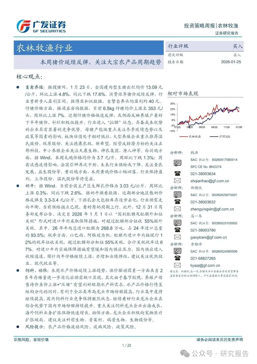 农林牧渔行业:本周猪价延续反弹,关注大宗农产品周期趋势