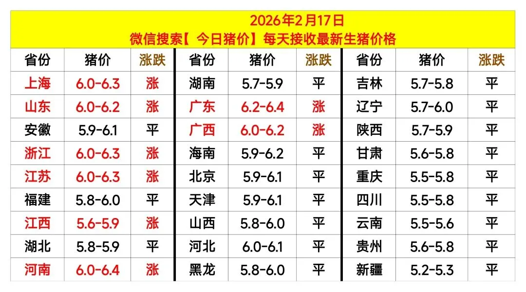 今日猪价|明日猪价2026.2.17(仅作参考)