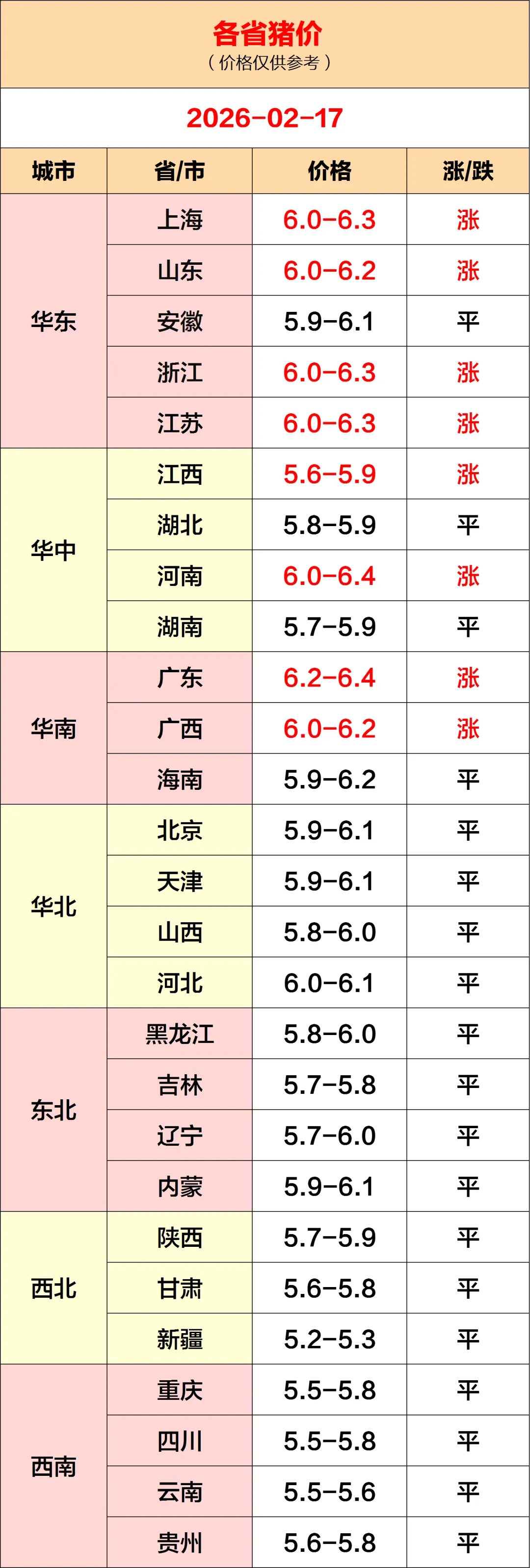 温馨提示:各场因猪的品种、品质、大小、单批销售数量等因素不同,实际售价均可能有所差异,以上报价仅供参考。