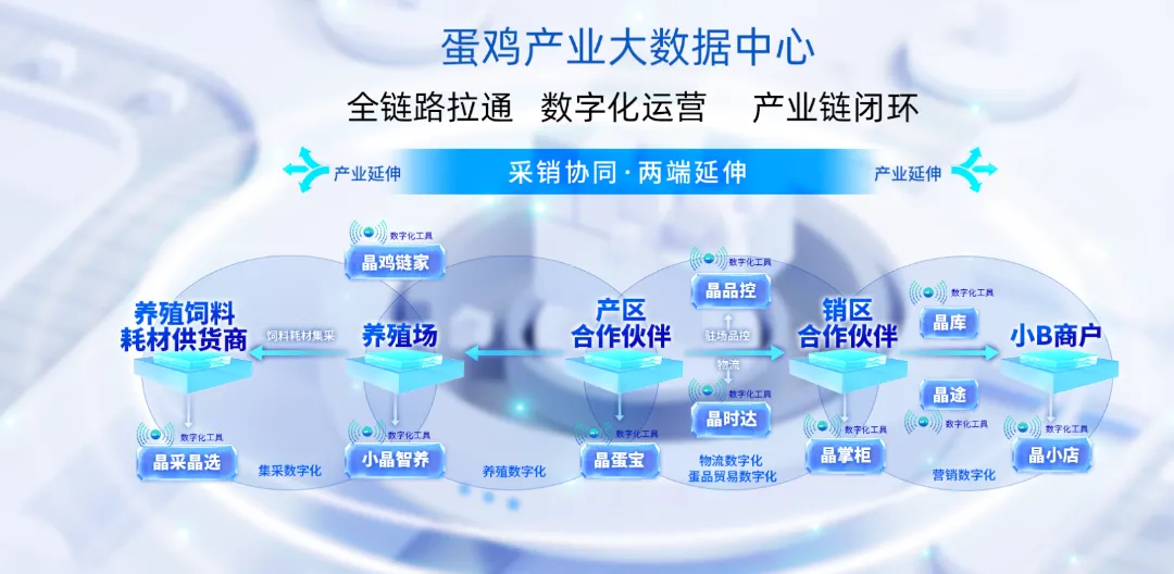 晶链通利用数智化科技赋能产业,通过营销数字化、物流数字化、蛋品贸易数字化、养殖数字化、集采数字化,提供蛋鸡产业从养殖、贸易、产业服务等全链条、全数据的产品和服务,用数据驱动采购、用数据驱动生产、用数据驱动销售、用数据驱动物流,帮助用户打造数字化新型供应链。