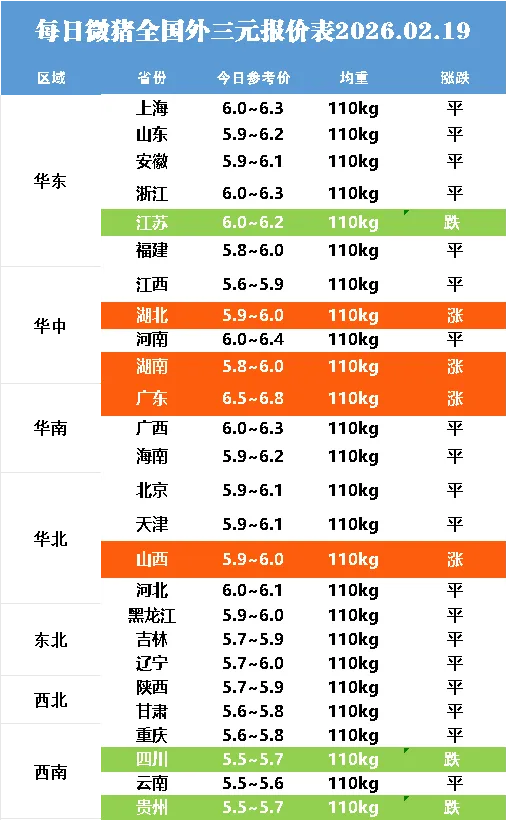 明日最新猪价2026.02.19点击蓝字关注 猪价不错过