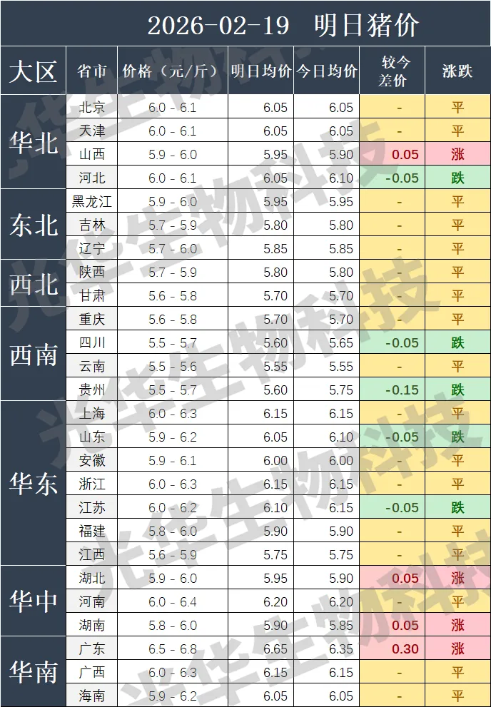 2026-2- 19全国猪价预测 养羊网 2026-02-18 2026-2- 19全国猪价预测----- 养羊网 2026-02-18 上一篇:速看!2月 19 日猪价预测. 下一篇:上涨“180°大变”!附:2月19日猪价 您可能还会对下面的文章感兴趣111: 相关文章 鸡蛋礼盒落地4款设计 贵阳特色火锅推荐|健身党也能冲的高蛋白涮 啥是育肥羊?? ?羊圈苍蝇终结者!小羊终于能安静干饭啦