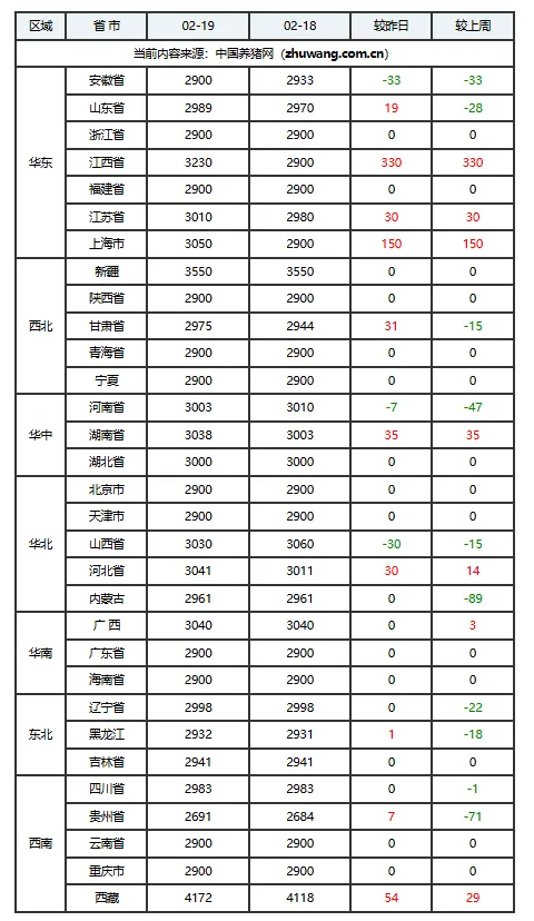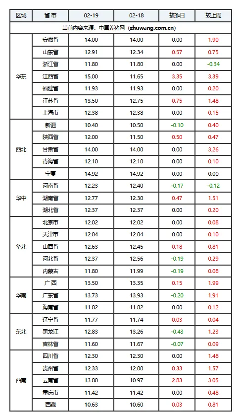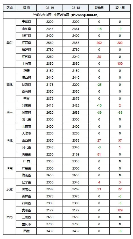 02月19日猪价:局部飘红,市场悄悄变天