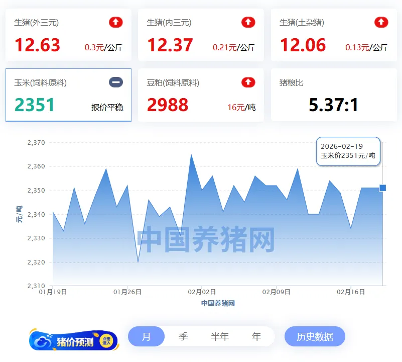 2026年02月19日-中国养猪网 全国玉米价格走势图及涨跌表