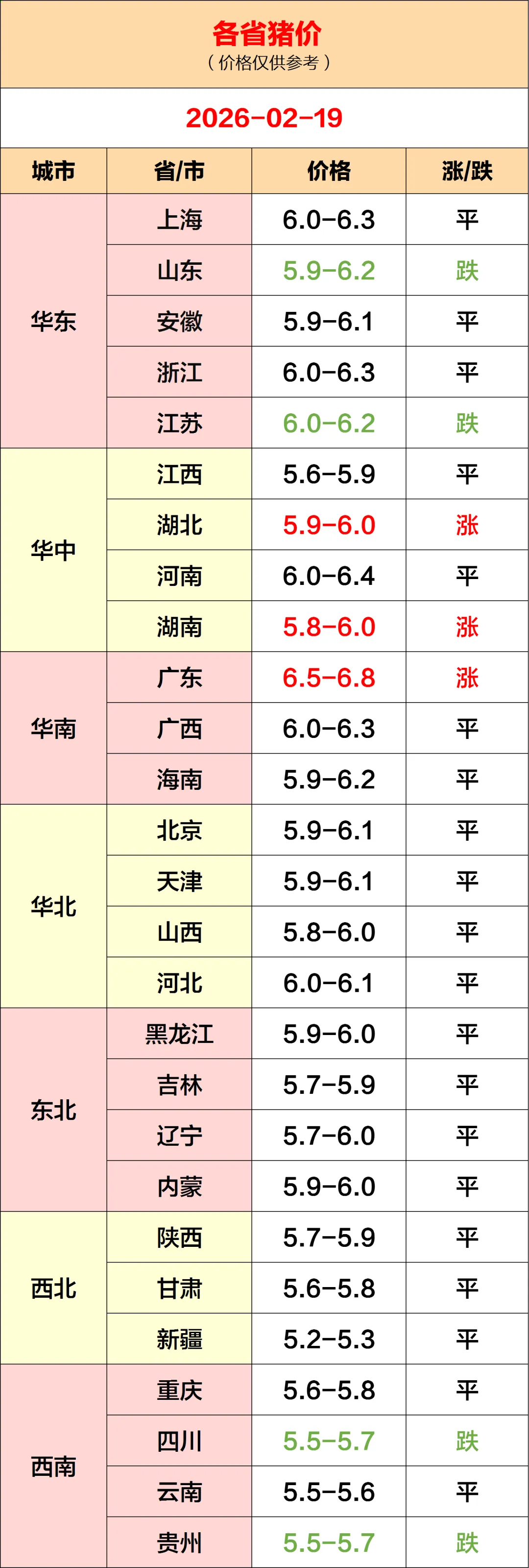 | 地区 | 淘汰母猪价格(元/斤) | 较昨天涨幅 |