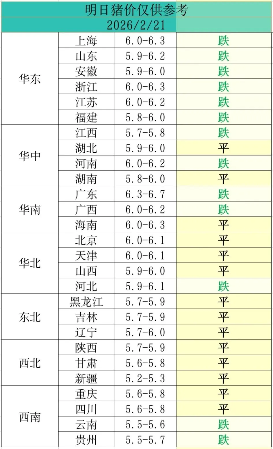 2026年2月21日全国猪价信息/供大家参考 养羊网 2026-02-20 2026年2月21日全国猪价信息/供大家参考 养羊网 2026-02-20 上一篇:【猪价早报】2026. 2 . 21 猪价突变!多地开收就下跌! 下一篇:猪价飙升85%!2026年中期或将迎来拐点? 您可能还会对下面的文章感兴趣111: 相关文章 2026.1.2日参考鸡蛋价格 2026.1.28明天猪价行情! 建议今天可以关注 近期价格更新!!!