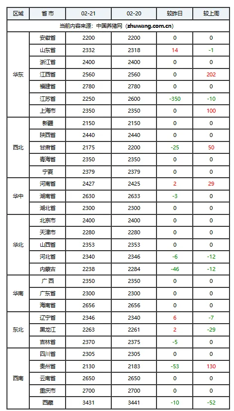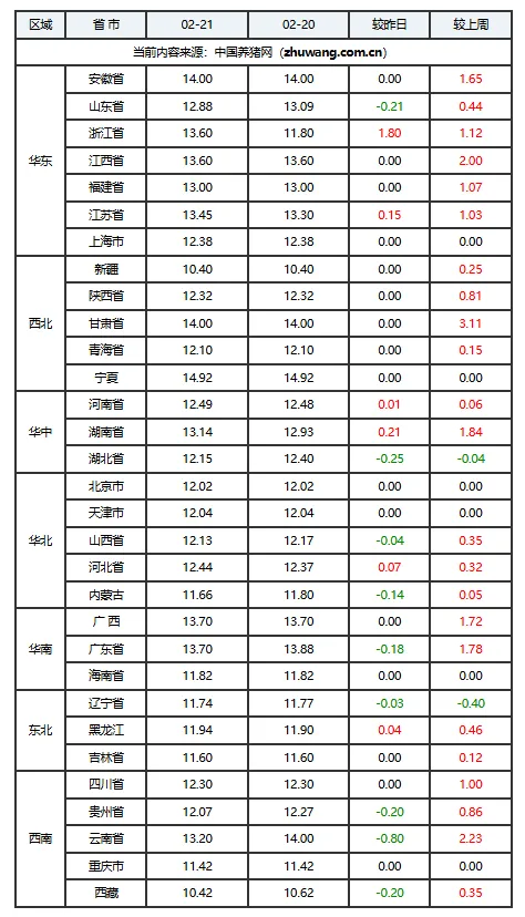02月21日猪价:供需博弈,价格重心或震荡走低!