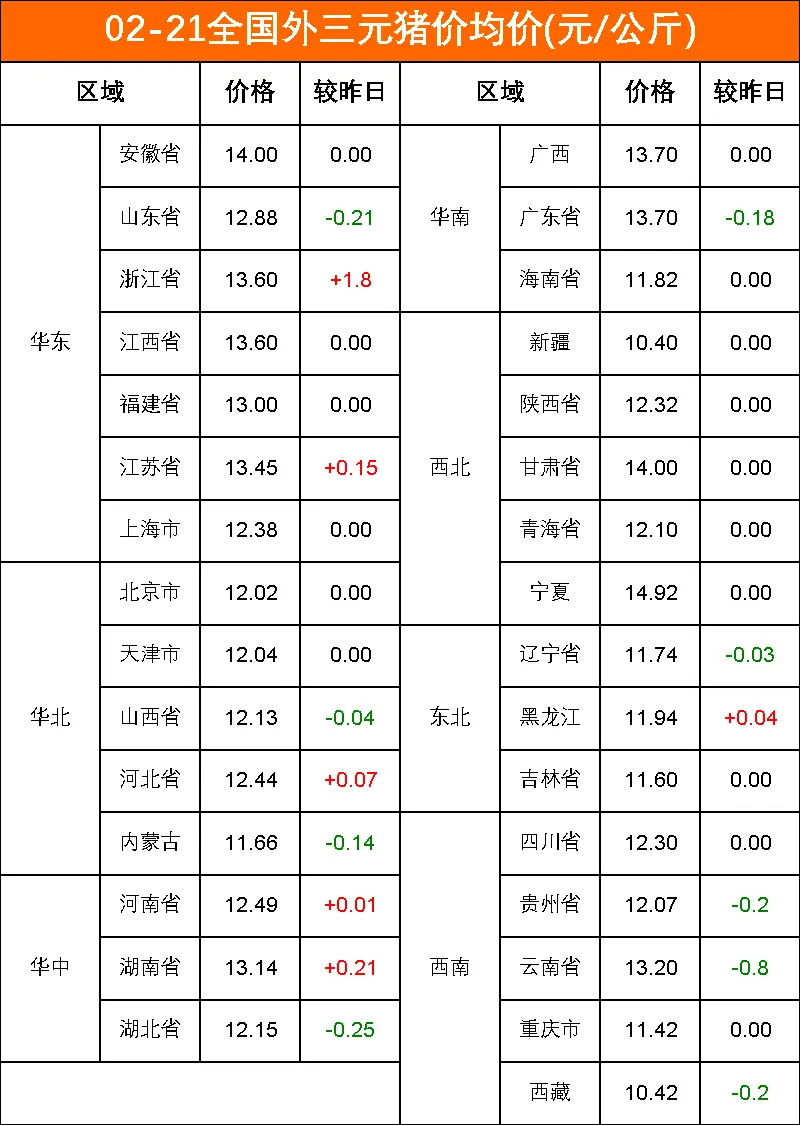 02.22明日猪价早知道,02.22全国最新猪价信息,价格平稳!