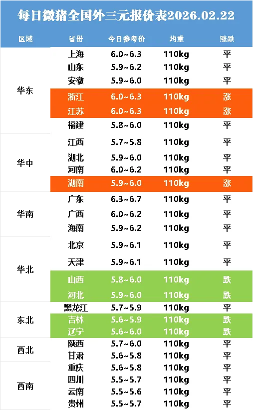 明日最新猪价2026.02.22点击蓝字关注 猪价不错过