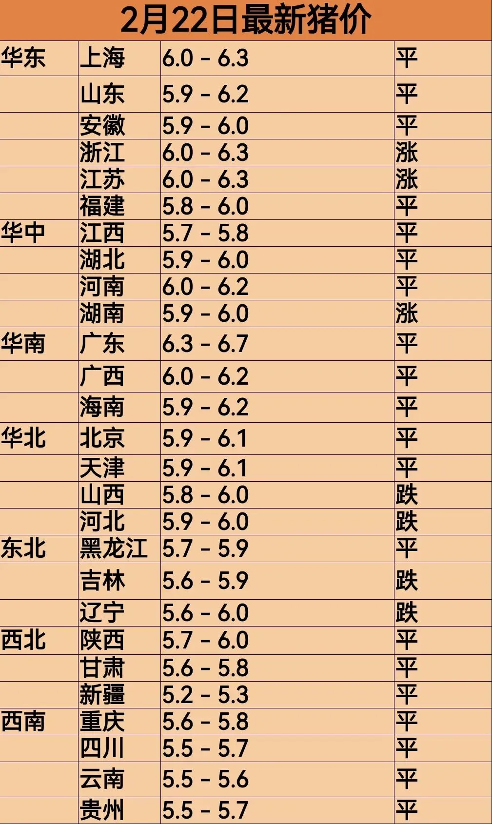 2月22日最新猪价!北跌南稳?!