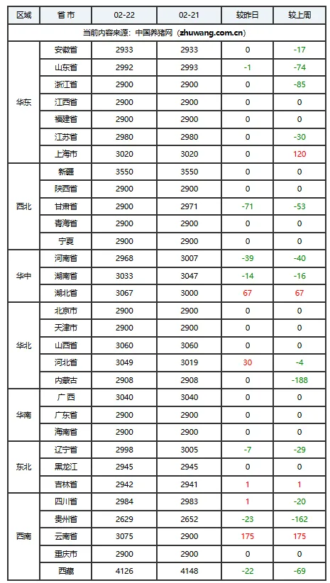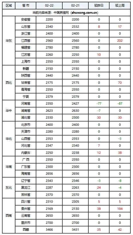 02月22日猪价:供应过剩,猪价承压下行!