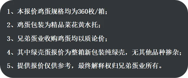以上鸡蛋规格为360枚/箱 |
