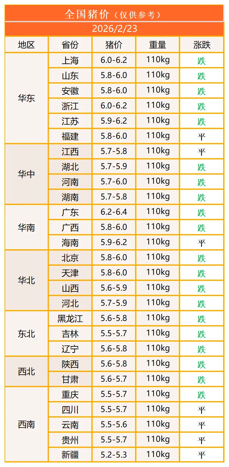 明日猪价2026年2月23日猪价信息 养羊网 2026-02-22 明日猪价2026年2月23日猪价信息图中二维码 >添加关注领异标新 鲜声夺人多用心 同分享长按指纹 >识别 养羊网 2026-02-22 上一篇:今日猪价|【仔猪价格】2026.2.22 下一篇:今日猪价|明天猪价分析2026.2.23 您可能还会对下面的文章感兴趣111: 相关文章 近期价格更新!!! 鸡蛋60个,24.8元 明天2026.1.20日鸡蛋价格预测 贵阳宝藏清水烫串串,闺蜜聚会新地标