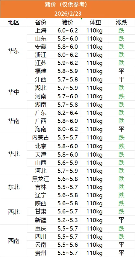 2月23日猪价 | 猪企恢复出栏,猪价下调为主!