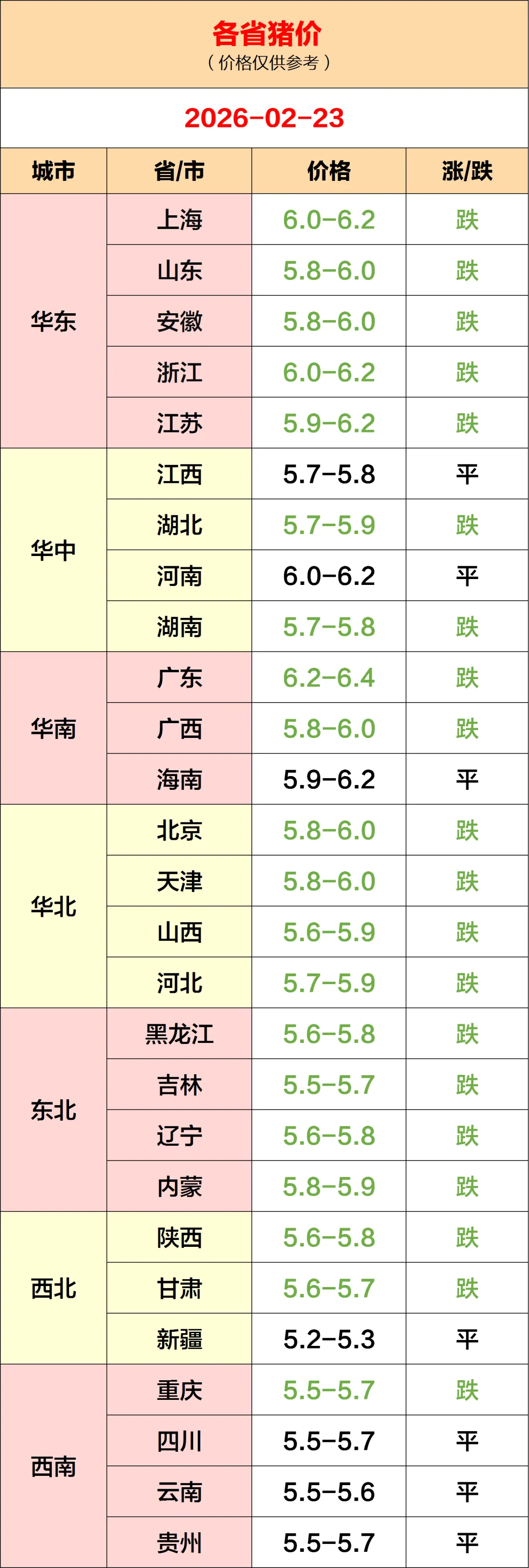 今日猪价(2026.02.23)