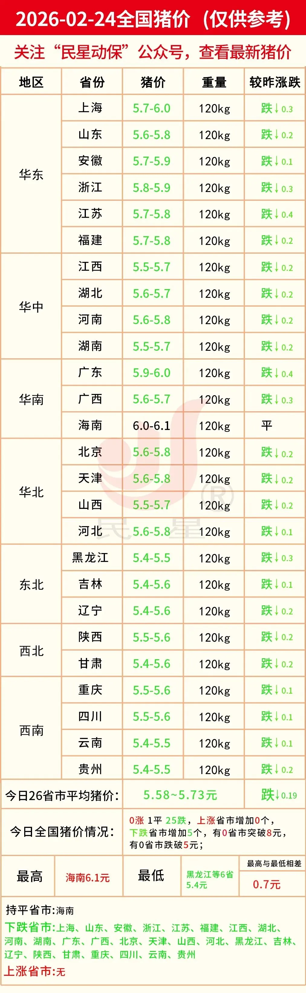 明日猪价—2026年02月24日(全国最新生猪价格) 养羊网 2026-02-23 明日猪价—2026年02月24日(全国最新生猪价格) 养羊网 2026-02-23 上一篇:【明天猪价】2026.2.24日全国猪价(已更新) 下一篇:【超前猪价大预测】2026年月02月25日~2026年02月27日!全国信息大预测! 您可能还会对下面的文章感兴趣111: 相关文章 2025年4月13日全国各地生猪价格信息 牛羊需要颗粒饲养吗?秸秆颗粒机有啥好处 2025年4月13日全国各地生猪价格信息 近期价格更新!!!