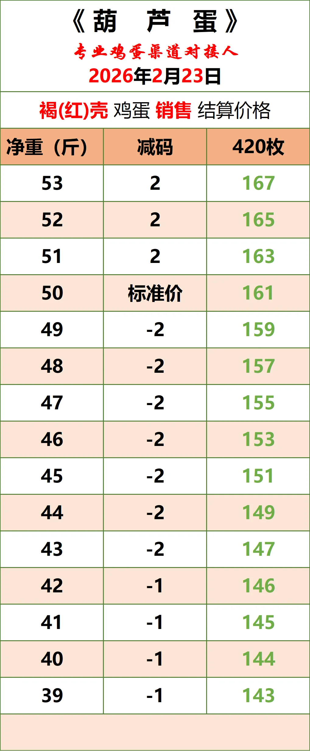 2026年2月23日《葫芦蛋》鸡蛋价格
