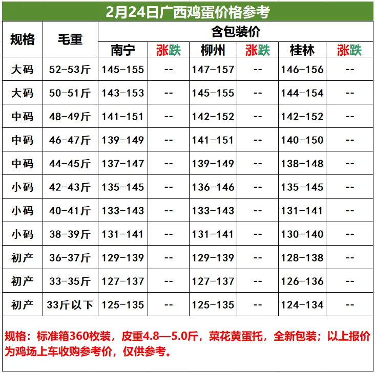 2月24日桂林、柳州、南宁鸡蛋价格参考