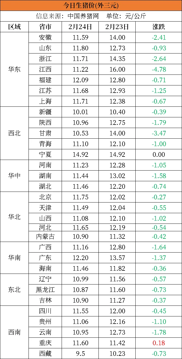 【2月24日猪价】供需失衡!养殖端出栏意愿较强