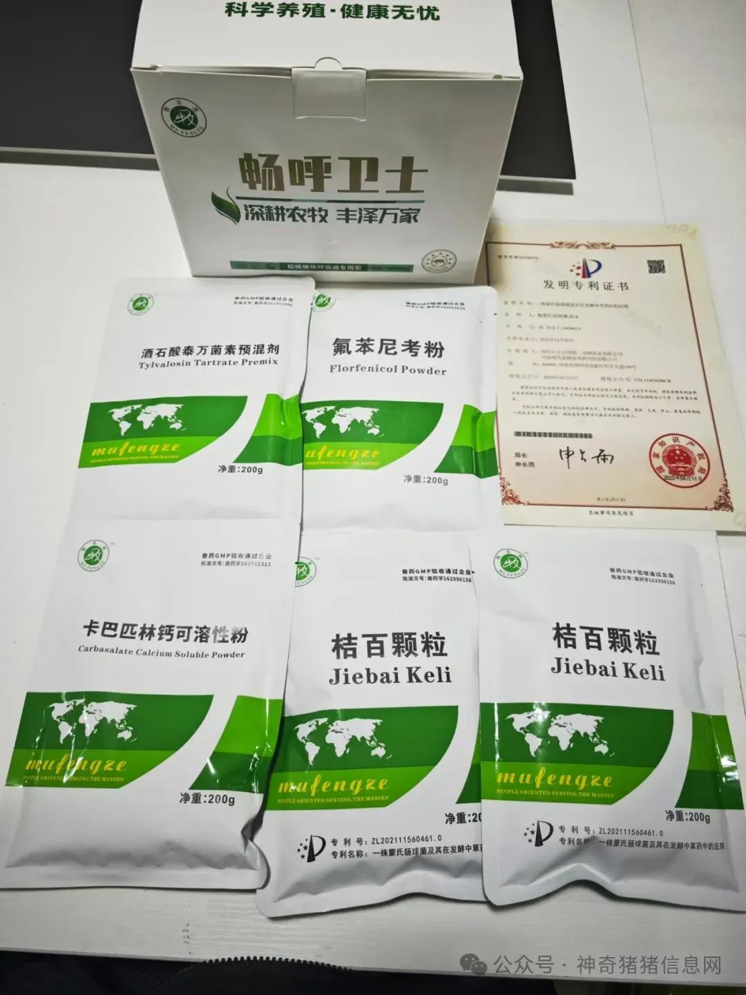(1)研究历程:克蓝是畅销产品从08年开始就已经使用,历经十多年年逐步完善,2016年初上报农业部门经过一年的论证研究证实,证明克蓝套餐,针对蓝耳,圆环,副猪,支原体,链球菌,具有很好的净化治疗效果,最后颁发克蓝套餐专利证书让更多养殖朋友信任产品,并且名字申请了商标证书,是具有唯一行,专属优润集团专用。下图是产品专利证书,商标注册证书