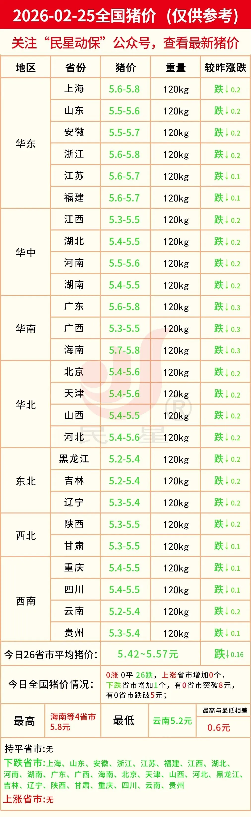 明日猪价—2026年02月25日(全国最新生猪价格) 养羊网 2026-02-24 明日猪价—2026年02月25日(全国最新生猪价格) 养羊网 2026-02-24 上一篇:猪事帮|| 2月25日猪价早知道(或以跌为主!) 下一篇:2026.2.25-伞猪明日猪价-全线飘绿! 您可能还会对下面的文章感兴趣111: 相关文章 12月16日猪价飙升,牧原温氏迎新掌门 四川巴中自家养殖黄羊打包出 30一斤的羊排 真的赚到啦 8月9日全国主要地区猪价